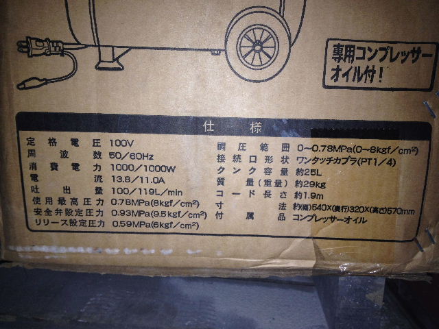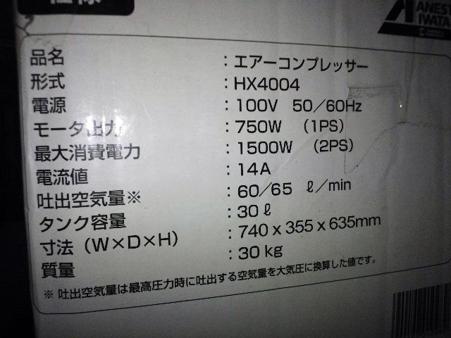 aアネストのコンプレッサーはビバホームと言うトステム系ホームセンターで買ったもの。全くの未開封。