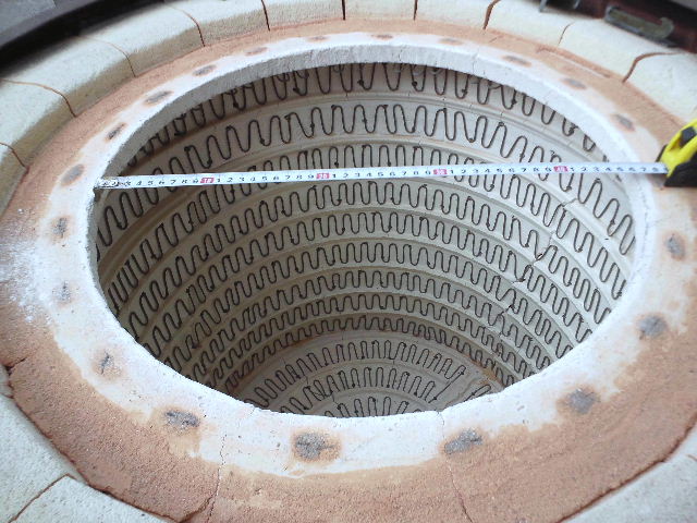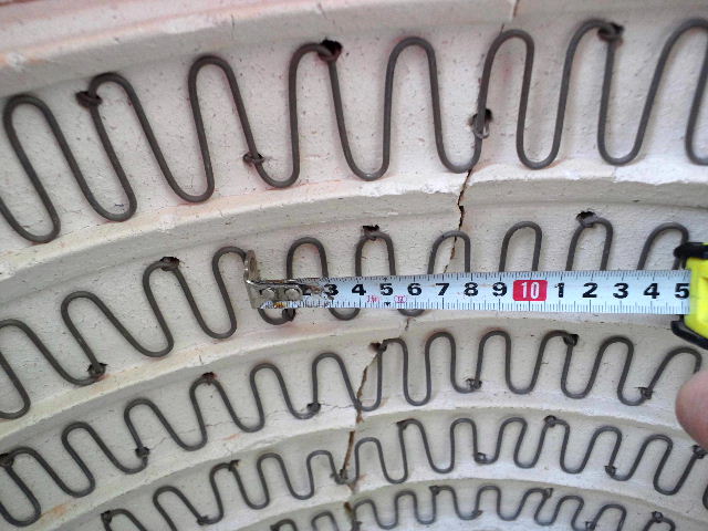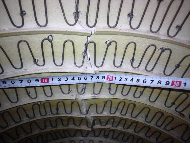 所有者の話では1240℃まで上がらなかったらしいので、ヒーター線が細くなっているのでしょう。床面にも亀裂が有りこのまま使うのは難しい。