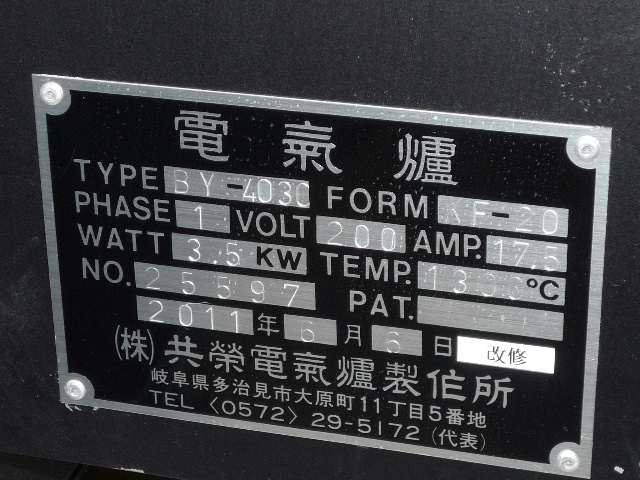 メーカー 共栄電気炉製作所