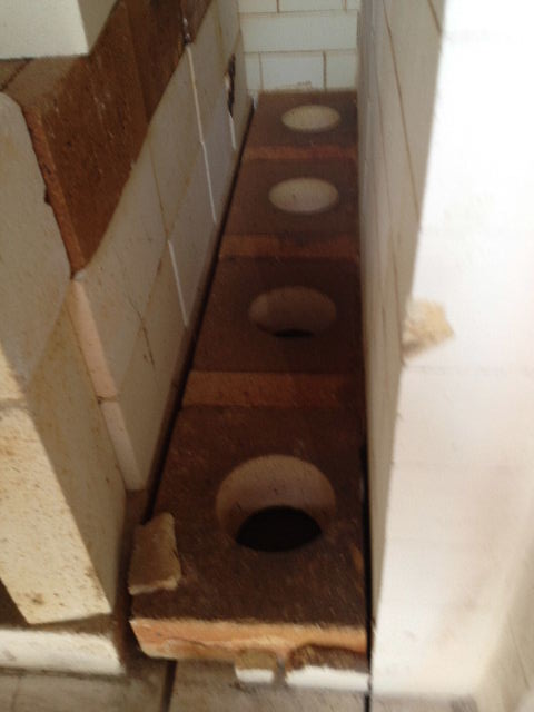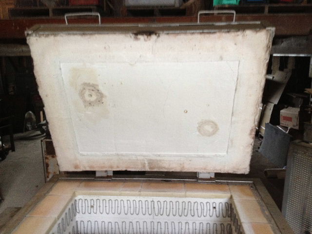 熱電対の穴は、向かって右上と左下、蓋の吹き出し穴は酸化焼成が多かったためか右の穴を埋めてあります。