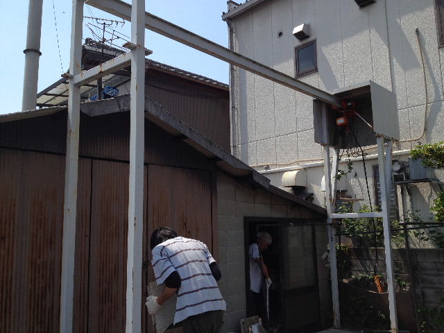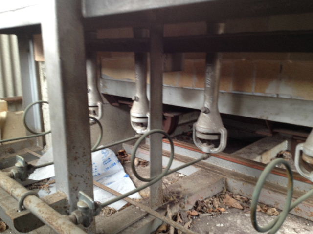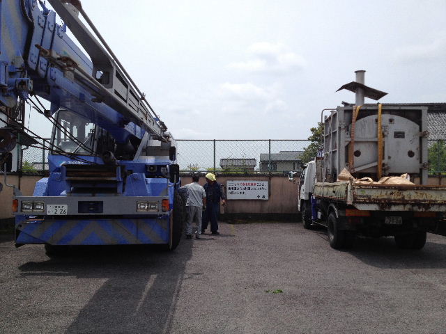 この窯を出すには16t吊りのラフターを使い、2区画奥から搬出した。