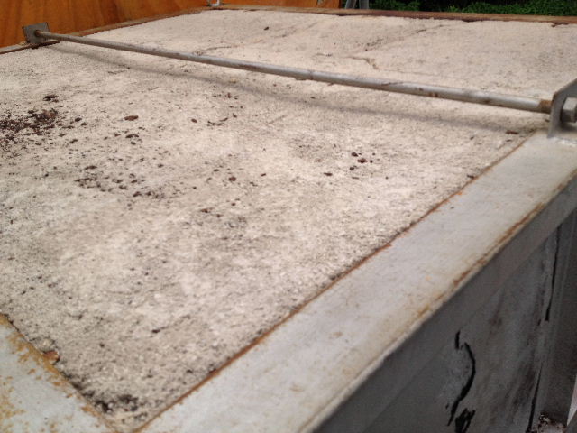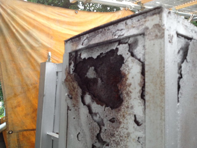 背面(煙突側)に10mmほどの亀裂。煙突の炉壁が薄いために変形している。