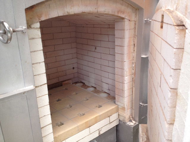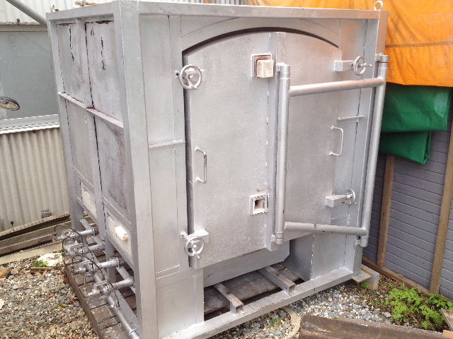 元々のガス配管の構造上、扉側バーナーと煙突側で炎の大きさにムラが出てしまうが、台車の排炎機構で炉圧の差を抑えるように工夫してくれた。さすが職人。