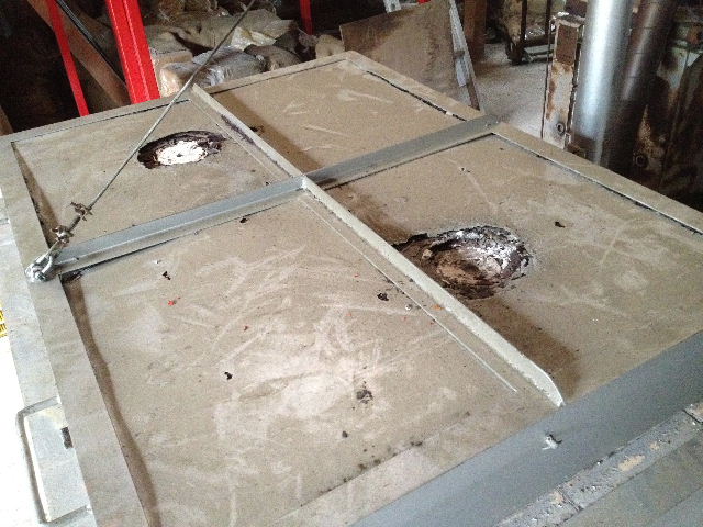 バーナー口の遮蔽板 本体レンガの変形があるので多少加工が必要