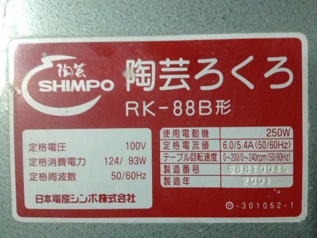 bRK-88B(100V250W6.0/5.4A0~200/0~240rpm) 2001年製 H13.3購入 ドベ受け付 リング摩耗大 価格20,000円(税込)