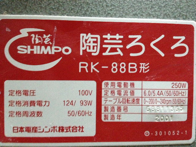 cRK-88B(100V250W6.0/5.4A0~200/0~240rpm) 2001年製 ドベ受け付 リングやや摩耗 価格25,000円(税込)